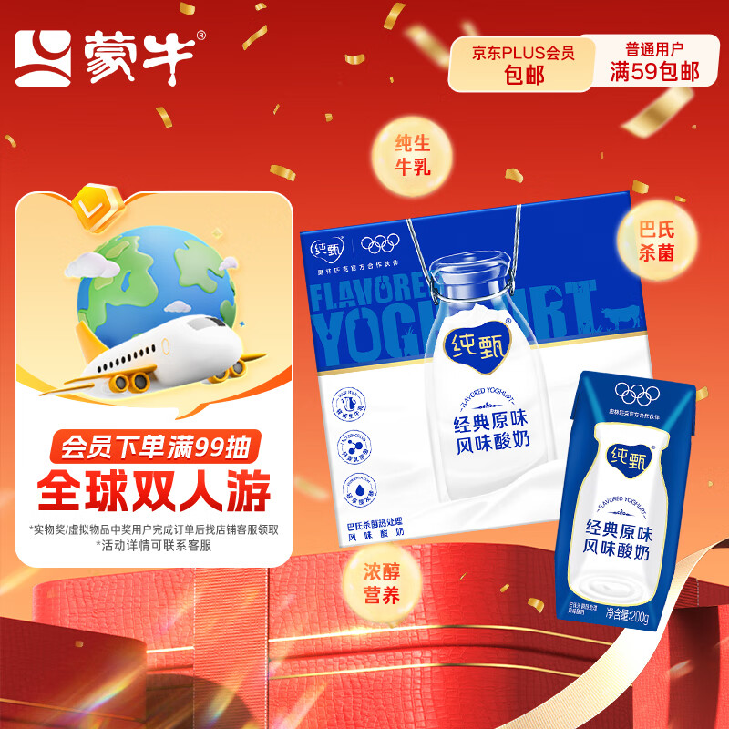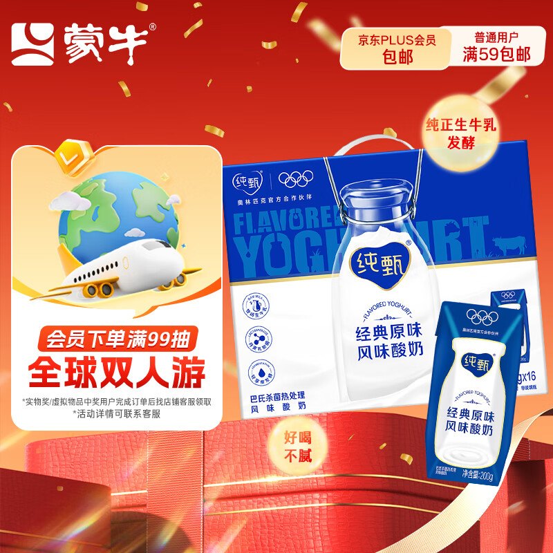 包邮 蒙牛纯甄风味酸牛奶200g*16盒 早餐酸奶配麦片送礼新老包装随机
